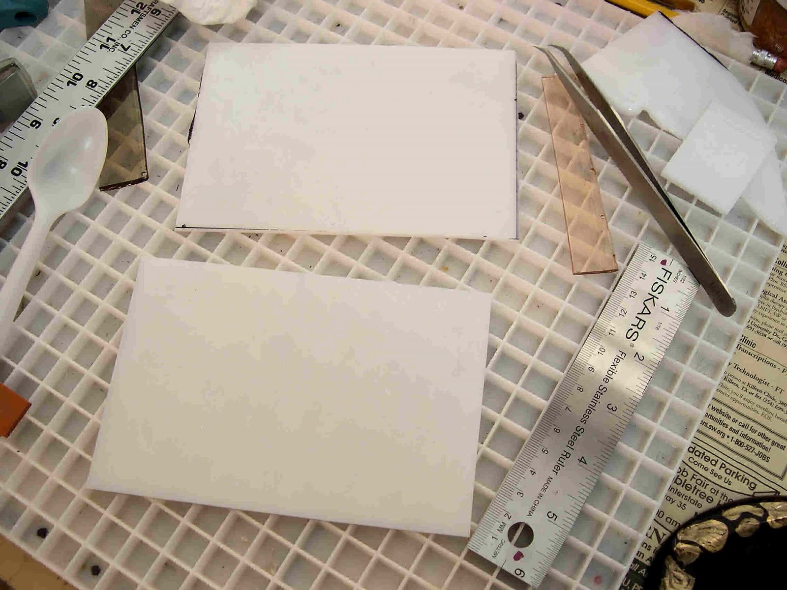I used the grinder on all the cut pieces to knock off irregularities and to even up the edges to match the white base piece of glass. Each piece was thoroughly washed in soapy water and rinsed.